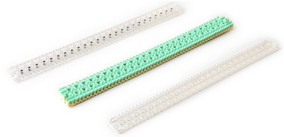 HJM3-K型半分接模块应用于半分接续,模块的基座上没有用 于切断的刀片,但保留了 U型元件。这样既能保持较小的接 触电阻和良好的电气连通性能,又能达到半分接的功能。 适用的导体线径为0.65-0.32mm (22-28AWG),最大绝缘外径为1.65mm(0.065")